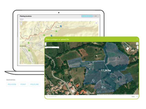• Collect geo-areas via a map interface or import them from GIS devices and automatically measure area sizes